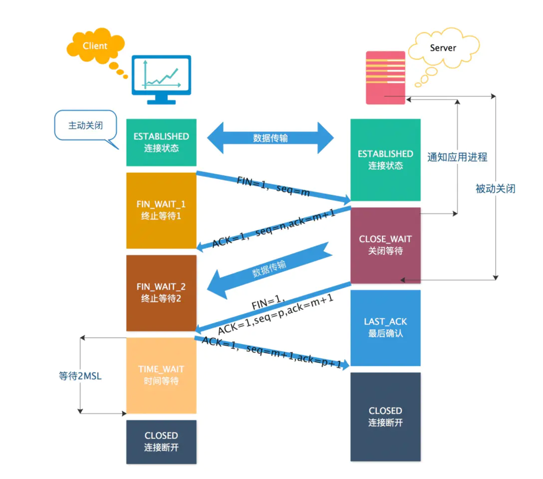 TIME-WAIT状态,必须经过 2*MSL(最长报文段寿命)的时间后,才进入CLOSED状态。而服务端只要收到客户端发出的确认,就立即进入CLOSED状态。