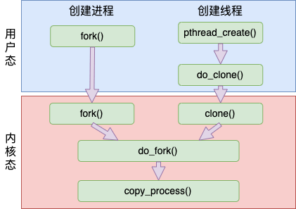 可见两者创建过程差不多,一样使用的是内核里的 do_fork 函数,最后走到 copy_process 来完整创建。copy_process 先是复制了一个新的 task_struct 出来,然后对 task_struct 中的各种核心对象进行拷贝处理,还申请了 pid 。