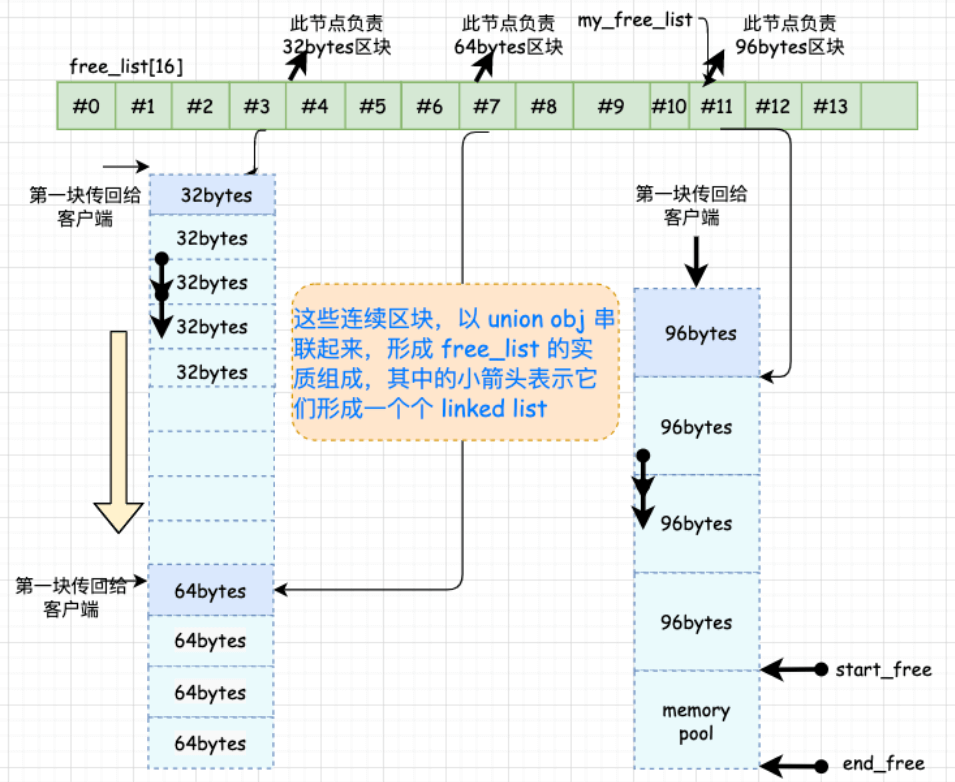 从内存池中取空间“切分”出free-list,是chunk_alloc()在工作: