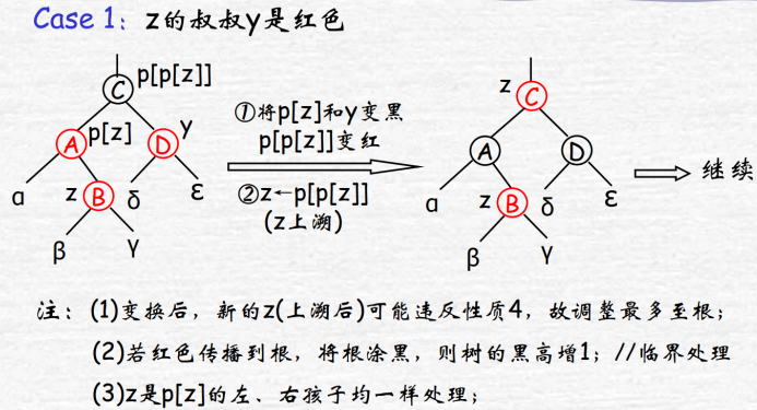 z红叔:将父叔爷结点染反色,视角移到爷结点迭代判断