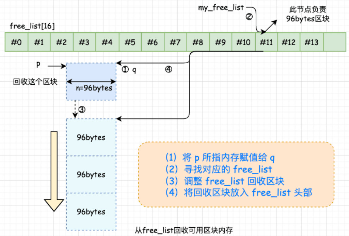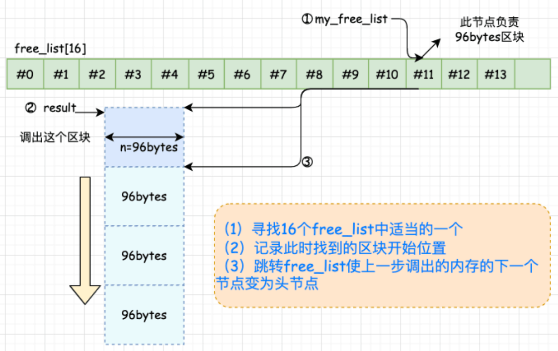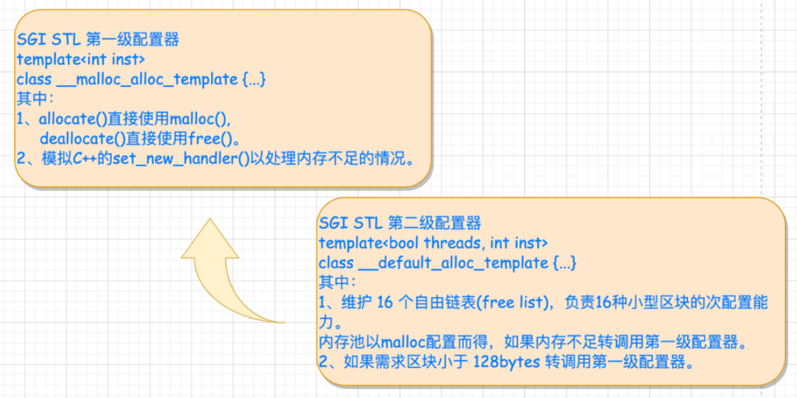 - 若没找到则调用一级配置器,再失败则bad_alloc()