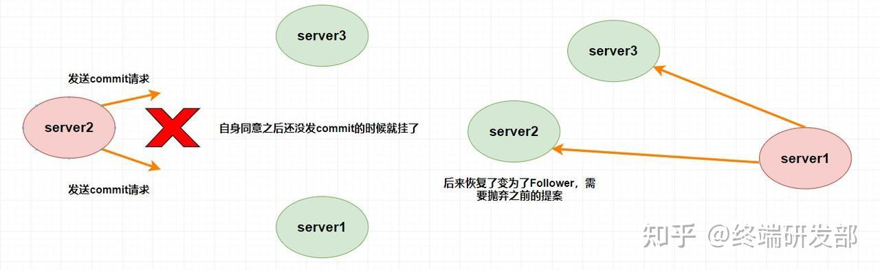 Leader (server2)发送commit请求,他发送给了server3,然后要发给server1的时候突然挂了。这个时候重新选举的时候我们如果把server1作为Leader的话,那么肯定会产生数据不一致性,因为server3肯定会提交刚刚server2发送的commit请求的提案,而server1根本没收到所以会丢弃。但实际这时