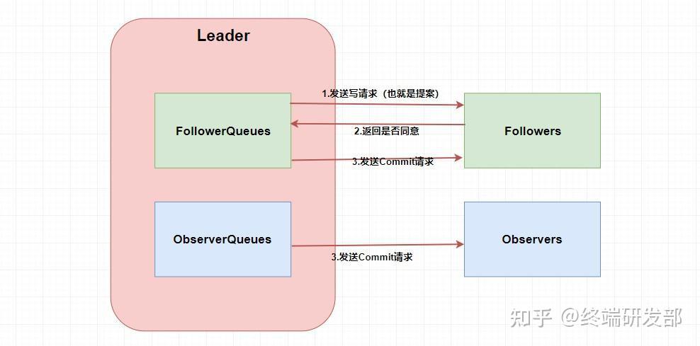 说白了就是 ZAB 协议是如何处理写请求的,只有 Leader 能处理写请求,那么 Follower 和 Observer 也需要同步更新数据,即在整个集群中保持数据的一致性