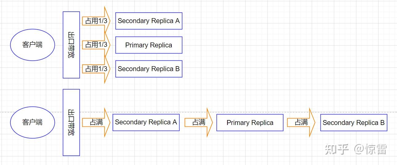 - 次副本Secondary Replica数据写完后,将回复主副本Primary Replica写入完毕。